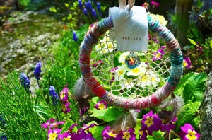 ドリームキャッチャーの真ん中に揺れるサンキャッチャー◎